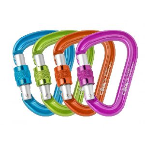 Karabinek HMS o średnim rozmiarze, przeznaczony do przyrządu asekuracyjnego. Można do niego wpiąć dwie liny, bez ryzyka że zapłaczą się w momencie odpadnięcia. Powierzchnia kontaktu jest dopasowana do dwóch lin i nie generuje tarcia na bokach karabinka podczas hamowania liny - czy to przy zjeździe czy przy odpadnięciu prowadzącego. |