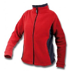 Damska kurtka polarowa; dwie kieszenie na zamek, dopasowana stójka, dół wykończony elastyczną lamówką.